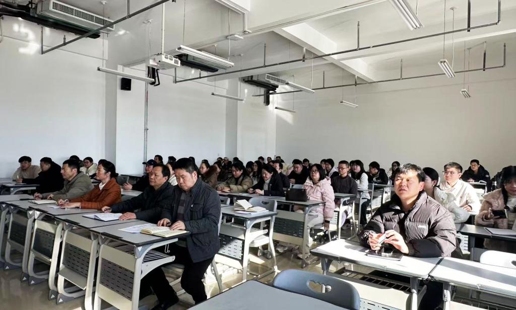 员莹围绕二十届四中全会精神核心要义,从三个维度展开系统解读。首先强调,党的二十届四中全会作为新征程上的关键会议,为“十五五”时期经济社会发展绘就了宏伟蓝图,其中对教育、科技、人才协同发展的战略部署,明确了新时代教育工作的方向指引和行动遵循。随后结合教学工作实际,聚焦“如何将全会精神融入教学全过程”提出具体要求。指出全体教师要立足教学主阵地,把全会提出的新思想、新论断、新要求转化为课程内容和教学实践,推动党的创新理论进教材、进课堂、进头脑;要紧扣“十五五”时期高质量发展需求,优化专业结构、创新教学方法,强化员工创新精神和实践能力培养,助力发展新质生产力;要锤炼自身专业素养,以“躬耕教坛、强国有我”的责任担当,打造让员工真心喜爱、终身受益的“金课”,夯实人才培养根基。