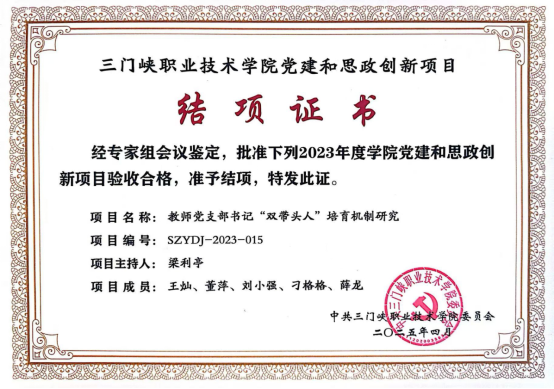 在金团队建设方面,支部党员教师中涌现出河南省学术带头人1人、河南省职业院校省级名师3人、省级骨干教师9人、河南省职业教育“双师型”教师19人。他们积极指导员工竞赛,在河南省高等职业教育技能大赛多个赛项中获得一等奖3项、二等奖6项,在“一带一路”暨金砖国家技能发展与技术创新大赛中获得国家级二等奖1项、三等奖2项。