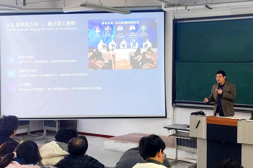 针对师生高度关切的职业发展问题,讲座分析解读了AIGC催生的新职业方向。分享了选对工具与语言、注重人机协作的实用方法,并深入阐释了提示词设计的核心要素与五大技巧,助力师生掌握提升AI工具使用效率的关键能力,也为师生的职业规划提供了参考依据。