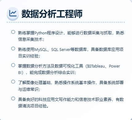 专业实践课程:数据库应用项目实训、数据采集与清洗项目实训、数据分析综合实训。
